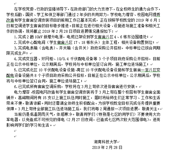 学校电力增容、校园电网提质改造和学生宿舍空调安装项目进展通报