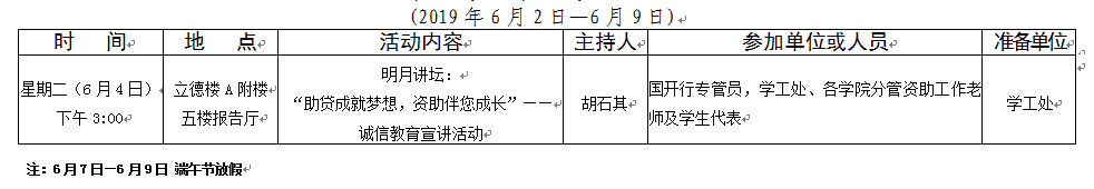 2018-2019学年第二学期第十五周会议安排表