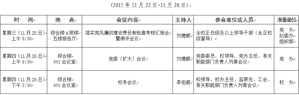 2015-2016学年第一学期第12周会议安排表