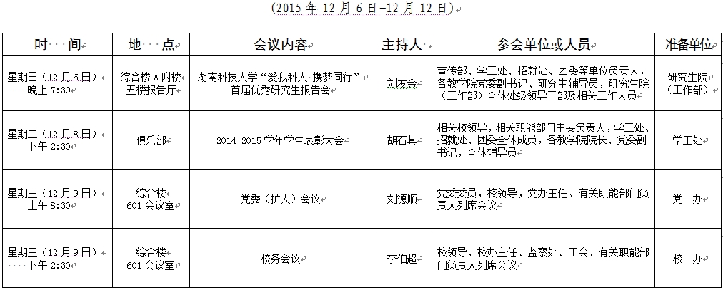 2015-2016学年第一学期第14周会议安排表