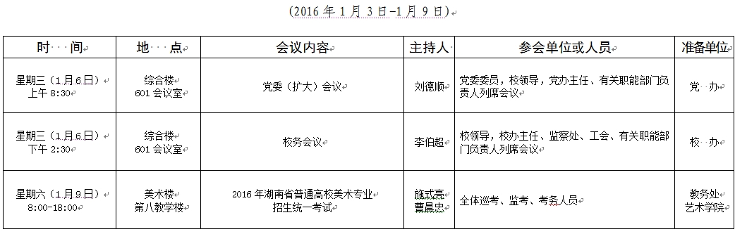 2015-2016学年第一学期第18周会议安排表