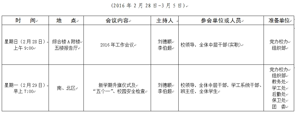 2015-2016学年第二学期第1周会议安排表