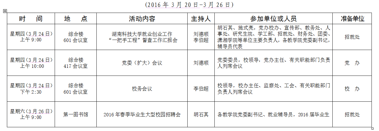 2015-2016学年第二学期第4周会议安排表