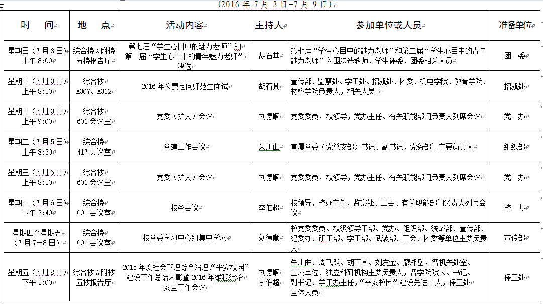 2015-2016学年第二学期第19周会议安排表