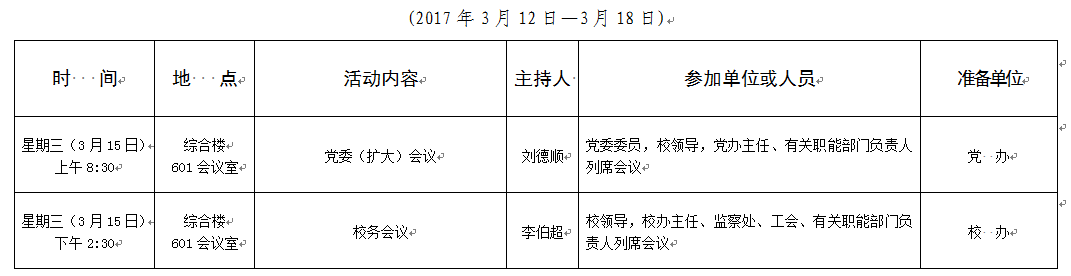 2016-2017学年第二学期第4周会议安排表
