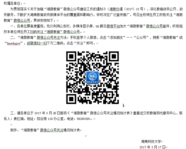关于组织开展关注“湘微教育”微信公众号活动的通知
