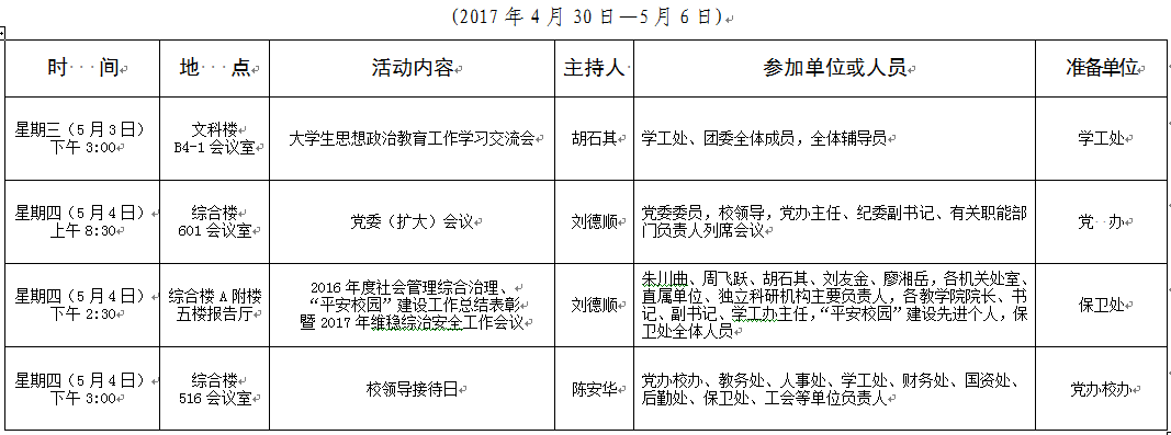 2016-2017学年第二学期第11周会议安排表