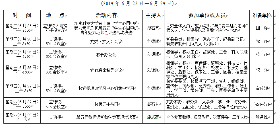 2018-2019学年第二学期第十八周会议安排表