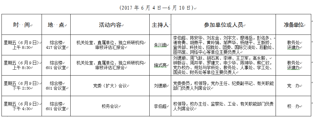 2016-2017学年第二学期第16周会议安排表