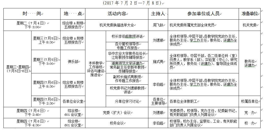 2016-2017学年第二学期第20周会议安排表